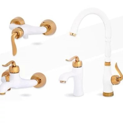ست چهار تیکه شیرآلات تبسم مدل آنیل سفید طلایی