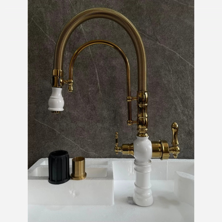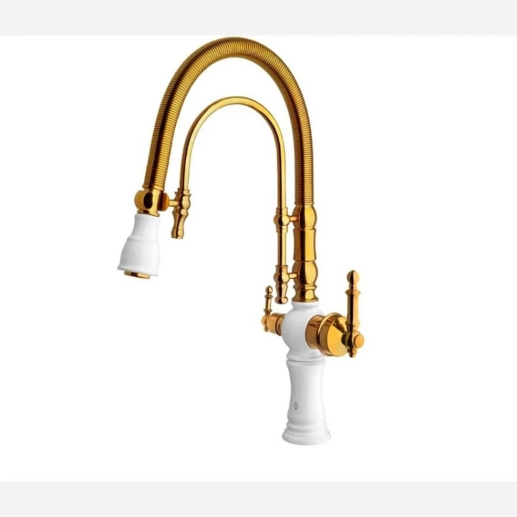 شیر سینک فنری سزار دو منظوره سفید طلایی