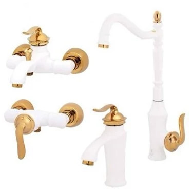ست چهار تیکه شیرآلات تبسم مدل بامبو سفید طلایی